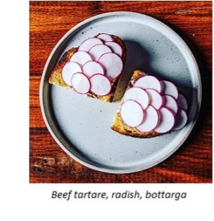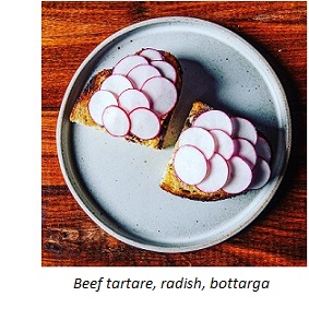 Q2: Please tell us about your career path and culinary background.A: I started as a busboy at the age of 14 and moved into the kitchen 2 years later. I worked the pantry at Nighttown and later moved to hot-side. I considered culinary school and went so far as to tour the CIA campus, but by the time I graduated from high school, I was tired of working all weekend while my friends were having a good time elsewhere. I took a couple of years off before realizing that the lineโs where Iโm meant to be. I bounced around for a few years, working in a number of Clevelandโs higher-end restaurants before taking a job at a rapidly expanding chain. I spent some time in their kitchens before relocating to company HQ, where I handled product development, sourcing, etc.Q3: What has influenced your cooking style and how would you describe it?A: Iโve been fortunate enough to travel throughout Europe, spending most of my time in Italy, Greece and Turkey. Some of my favorite memories are of simple meals in extraordinary places. Iโve learned that simple preparations often do a better job of showcasing the quality of the ingredients youโre using. Instead of complicated recipes, I rely on unique pairings to keep things interesting. I try to create dishes that offer something familiar, as well as something unexpected. Maybe even something that the guest has never heard of before. Trying new things can be intimidating to some, so my goal is to package that new thing in a way thatโs approachable to less adventurous eaters. For example, our tartare is seasoned for the guest and spread on toast. We cover it with shingled radish so itโs less apparent (at least visually) that youโre eating raw beef. I think this helps some of our guests move past their preconceptions and (hopefully) enjoy a dish they may have been scared to try. For those that enjoy tartare, we put our own spin on it by seasoning the steak with an emulsion we make using bottarga, a salt-cured mullet roe we import from Italy.Q4: First opening in late 2019, Alea has reopened twice as a result of temporary closings, first starting with the mandated dine-in shut down, and then during the winter. Have you kept the concept continuously the same, or is there anything different diners can expect?