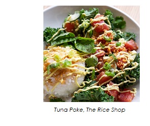 No matter the concept, Anthony is known for making as much of each dish as possible from scratch. For example, at Lox, Stock, and Brisket he smokes his own meats, pickles cucumbers and makes the sauces. When that is the priority, “it all comes down to using the best possible quality ingredients,” Anthony emphasized. Open for breakfast and lunch since April 2018, Lox, Stock and Brisket focuses on deli sandwiches, such as The Upper East Side (brisket, cucumbers, dill, mustard, rye) and Ridge Lane (lox, cream cheese, cucumbers, dill, red onion, bagel), to name a couple. Sides like Matzo Ball Soup, Potato Salad and Coleslaw round out the menu, and meats are also sold by the pound. On the other hand, The Rice Shop, open since October 2018, serves lunch and dinner, offering creations like BBQ Pork Belly, Tuna Poke, and Tofu Green Curry, all served on a bed of rice. To make it even more special, the Ridge Lane and Big Boro sandwiches from Lox, Stock and Brisket make a guest appearance at The Rice Shop every Sunday during brunch.