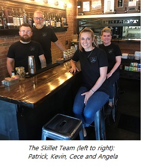 Born in Kentucky, Kevin grew up primarily in south central Ohio, and returning to the area to open a restaurant was all about returning home. “For the most part, cooking was fairly innate and became a catharsis for rough spots in my life. I’ve been involved in many other industries and trades, but somehow have always returned to the kitchen,” says Caskey. The origin of Skillet was a family collaboration with Angela and Patrick and was envisioned as a food truck that the family could run, since Kevin was involved in another restaurant. However, before the food truck came to fruition, a brick and mortar opportunity presented itself.