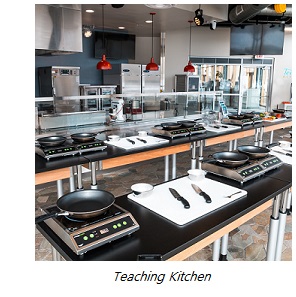 As the name suggests, the Teaching Kitchen is a cooking classroom, where students and members of the community alike can take classes on all things food. It’s also where the university’s chefs test recipes, and where the kitchen staff gets training. Drawing on Marissa’s cooking background in tv and film, the classroom is equipped with a variety of technology to assist in its many different uses. “There are cameras that we can use to enhance what the chef is demonstrating. The cameras can also be used to record the class to be shown later. The tables for students raise and lower, depending on the age of the students and type of class,” Marissa describes. “We can have students cook at their individual stations or create stations where they can cook as a team. It is fun to see these for either competition or team-building exercises.” Classes offered range from Knife Skills 101 to A Night in Tuscany to a Mommy or Daddy & Me class for parents and their young children.