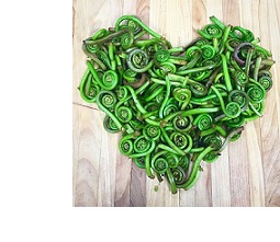Unfortunately without musical properties, Fiddleheads are the top portion of young, edible ferns, usually of the Ostrich variety. Bright green and tightly coiled, they are about the size of a quarter and look like the end of a string instrument. They can be found in areas with wet soil, like the edges of forests, rivers and marshes. If not foraged in time, fiddleheads uncurl into new leaves of the fern, and no longer have the same pleasing taste. Due to their short availability, fiddleheads are regarded as a rare delicacy, but should not eaten raw, as they contain harmful enzymes and acids. Before cooking, make sure to remove any brown, protective barrier by rubbing gently or washing fiddleheads in cold water. Fiddleheads have a grassy and slightly nutty flavor, similar to asparagus, broccoli or spinach. To taste their true flavor, they can be cooked simply by sautéing with seasoning and butter or oil. However, they are also delicious steamed, boiled, fried or baked. Try them in soups, stir fry, casseroles and on pizza. They pair well with garlic, mushrooms, tomatoes and bacon.