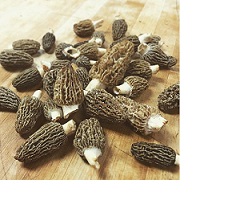 Resembling a honeycomb, Morels are wild mushrooms with caps made up of ridges and craters. Usually found in the Great Lakes region mid to late spring, both temperature and moisture levels needs to be optimal for the elusive morel to make its appearance. When the time strikes, look for morels in pastures or meadows by old trees that are dead or dying. Once found, cut the stem at an inch away from the cap, and cook before consumption, as they are toxic raw. When storing, good air circulation is key. If not preserving them for later use, keep them moist, but not soaking, for up to a week. They can also be dried, and later rehydrated. Morels have a deep, earthy, nutty flavor and a meaty, but tender texture. Sauté them with butter for the most pristine taste, but morels are also great with eggs, in pasta or in a creamy soup or sauce, especially with asparagus or pork. Some prefer them lightly fried in flour, or stuffed with herbs and veggies or meat.