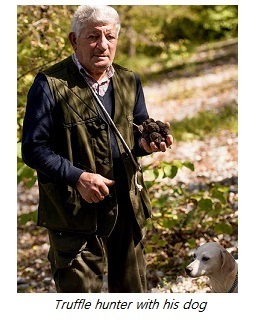 Urbani relies on hundreds of independent contractors in Italy and France to harvest truffles. These contractors work with highly trained dogs, who sniffs out the truffles’ locations in exchange for treats. In the past, pigs were used for the job. However, over time dogs replaced them for not only their more obedient behavior, but also because it allowed the hunters to be more discrete. Moreover, truffle foragers usually go out in the woods or orchards between 3 or 4 A.M., in order to keep their truffle hunting locations a secret. Once a cluster of truffles is found, the hunters are careful to cover back up any holes made, and will often check the same spot a few days later, as spores left behind may produce more crop.